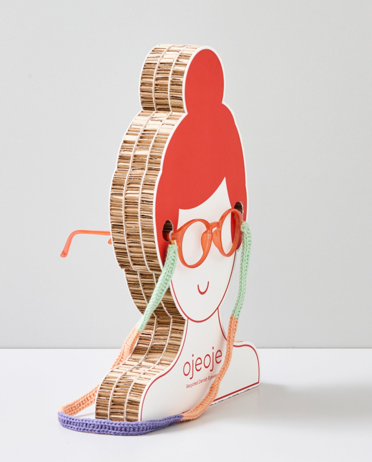 Recycled display ansigt dame til 1 stk. OjeOje briller - Vi har øje for klimaet med vores display, som er designet og produceret i FSC papir - Skab blikfang i butikken!